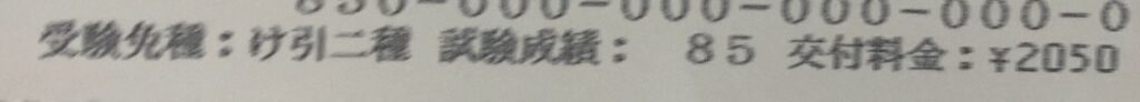 免許証引換書に表示してある成績を見ると、合格最低ラインの80点を上回る85点でした。嬉しい!